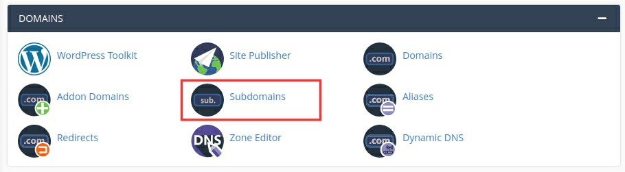 Step 1: Select the notepad icon that corresponds to the subdomain you wish to manage.