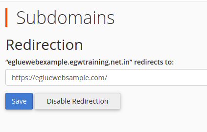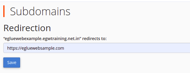Step 2: If you need to redirect, enter the link to which you wish to redirect the subdomain in the available text box and click Save.