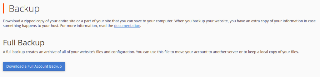 Step 1: To create full backup of your website click Download a full Account Backup button under Full Backup section