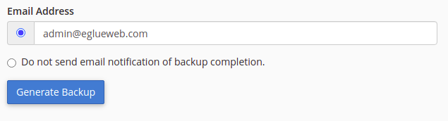 - Home Directory : If you choose this option, the backup file will be saved on the server.