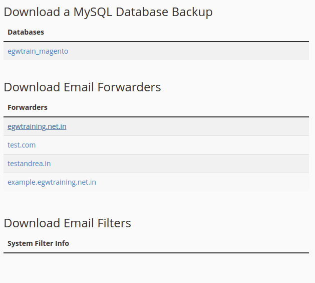 Likewise you can download the backup of your database, Email forwarders and Email filters