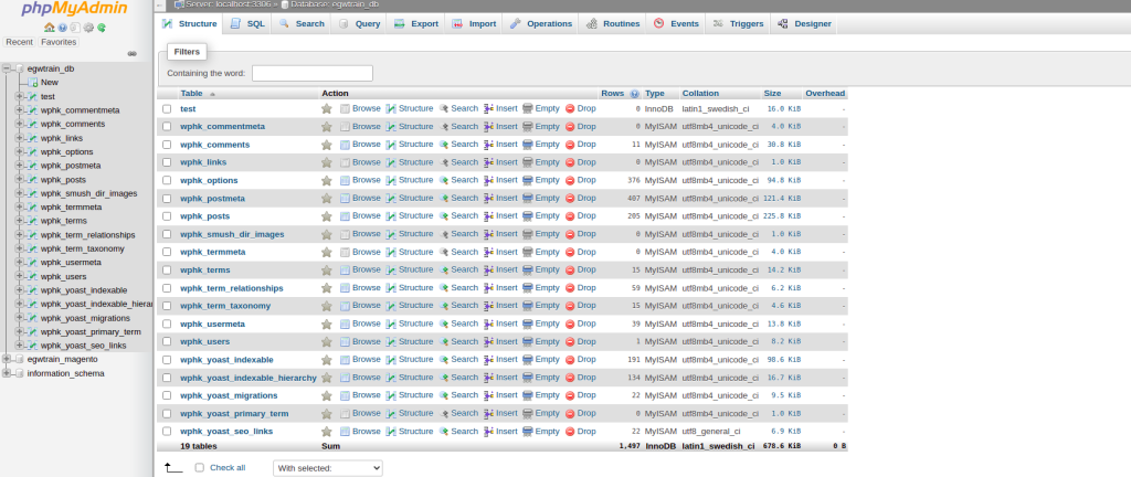 This window will list all your databases related to your websites from here you can click on the existing database of your website from the left side of your window.