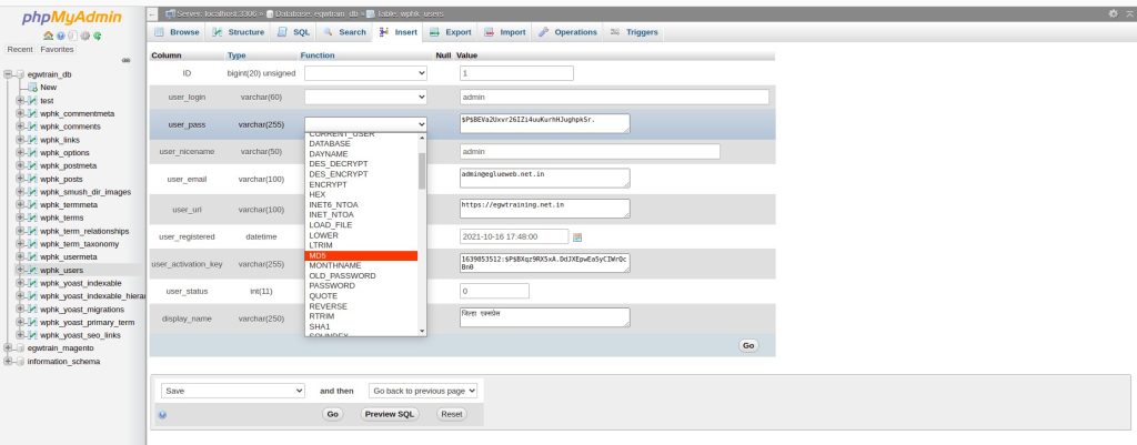 Step 4: Then you will see a window as shown below from here Under user_login, you will see the list of registered users. Under the user whose password you wish to reset, click edit.