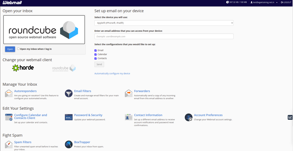 Here you can change your default webmail apps by switching between roundcube  and horde.