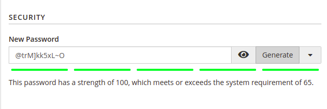 The Green line beneath shows the password strength. Always use a password with good strength. (Preferably random generated passwords).